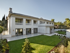 Διώροφη κατοικία με υπόγειο, ξενώνα και δύο κολυμβητικές δεξαμενές